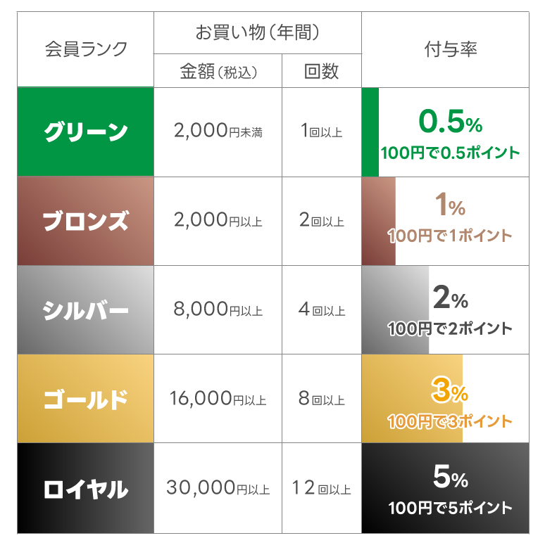会員ランクに応じてポイント付与率UP