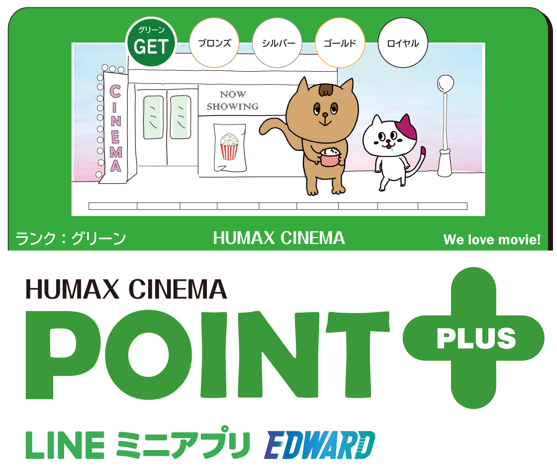 貯めたポイントはポップコーンやヒューマックスシネマ ポイントカードのポイント(映画鑑賞ポイント)と交換できます。