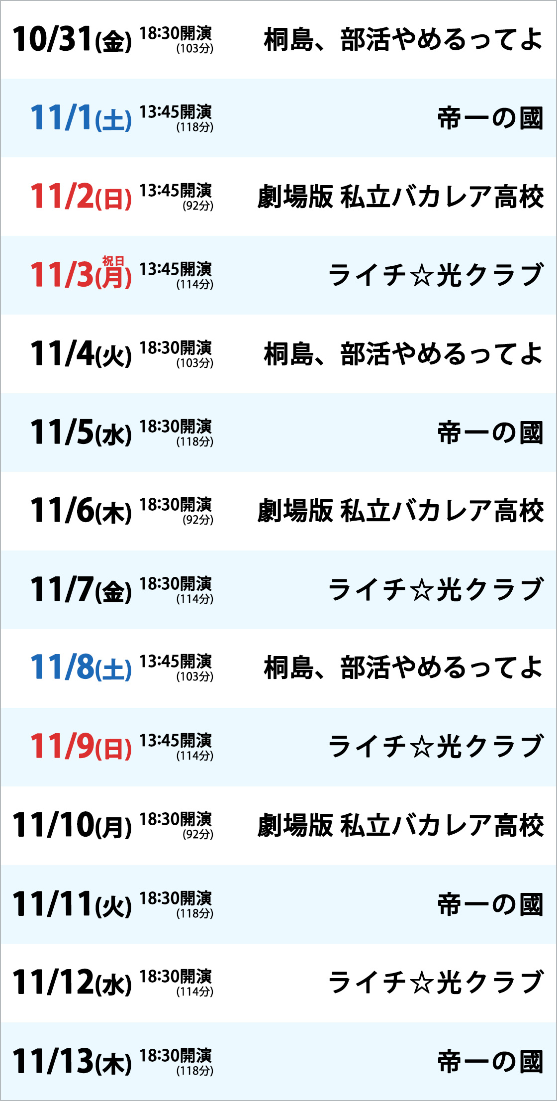 11/3(月)・11/7(金)・11/9(日)・11/12(水)