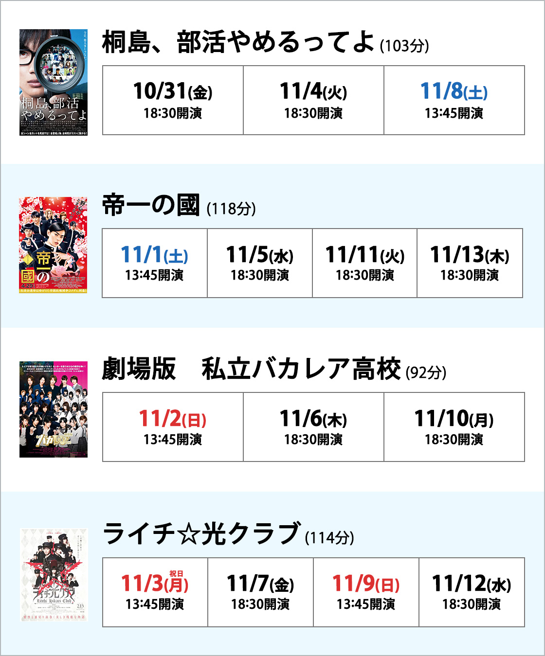 作品ごとに上映日をまとめました。お気に入りの作品をチェック!