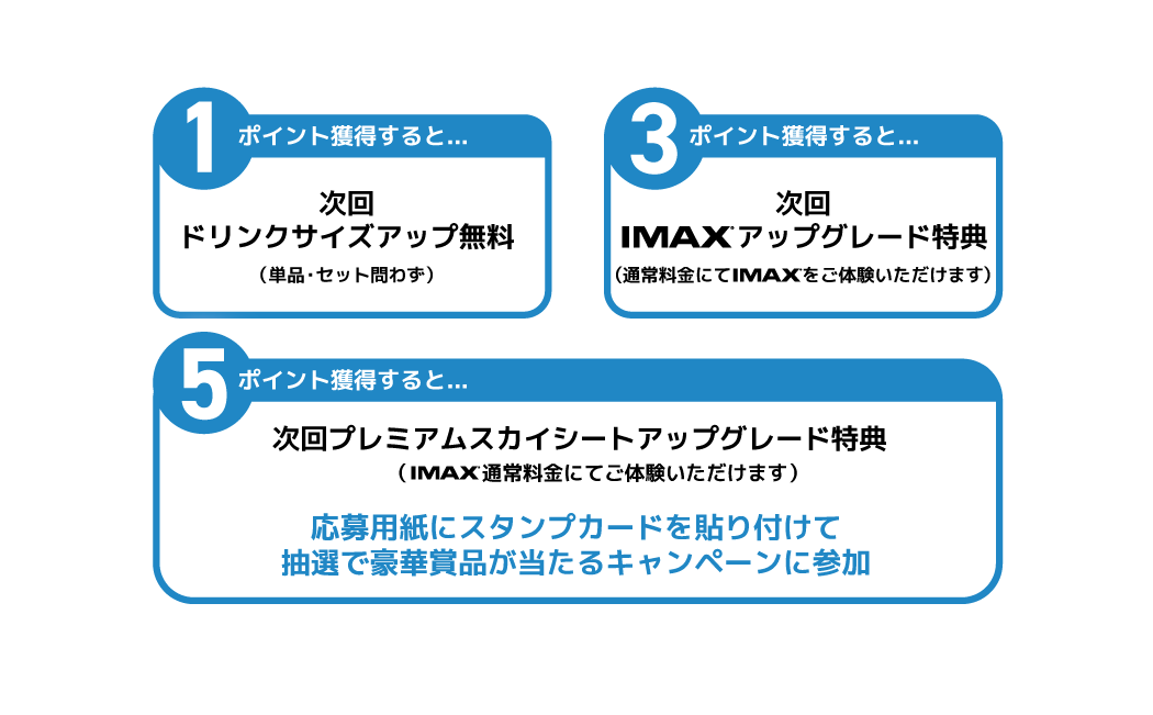 IMAX®またはIMAX®3Dをご鑑賞の際、スタンプカードをご提示ください。オンラインでご購入の方は購入完了メール画面をご提示ください。