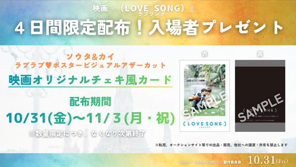 10/31(金)公開、映画『(LOVE SONG)』にて、入場者プレゼントの配布が決定しました!