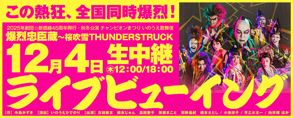 劇団☆新感線の45周年を記念して、12月4日(木)にて秋冬公演『爆烈忠臣蔵~桜吹雪THUNDERSTRUCK』のライブ・ビューインの開催が決定いたしました!