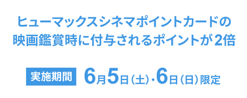 - 新規入会は、劇場のチケットカウンター(有人窓口)にて入会申込後、その場でカードをお渡しいたします。6/5(土)・6/6(日)当日入会のお客様も、鑑賞ポイント2倍の対象となります。