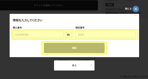 ・HUMAX CINEMAチケット番号 - チケットの購入が成立。(この時点で決済が確定します。)