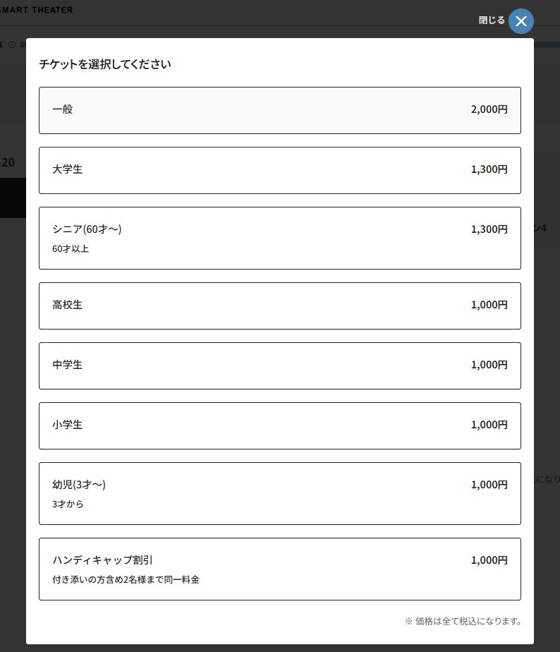 - ご希望の劇場・日時・作品・座席・購入枚数を選択