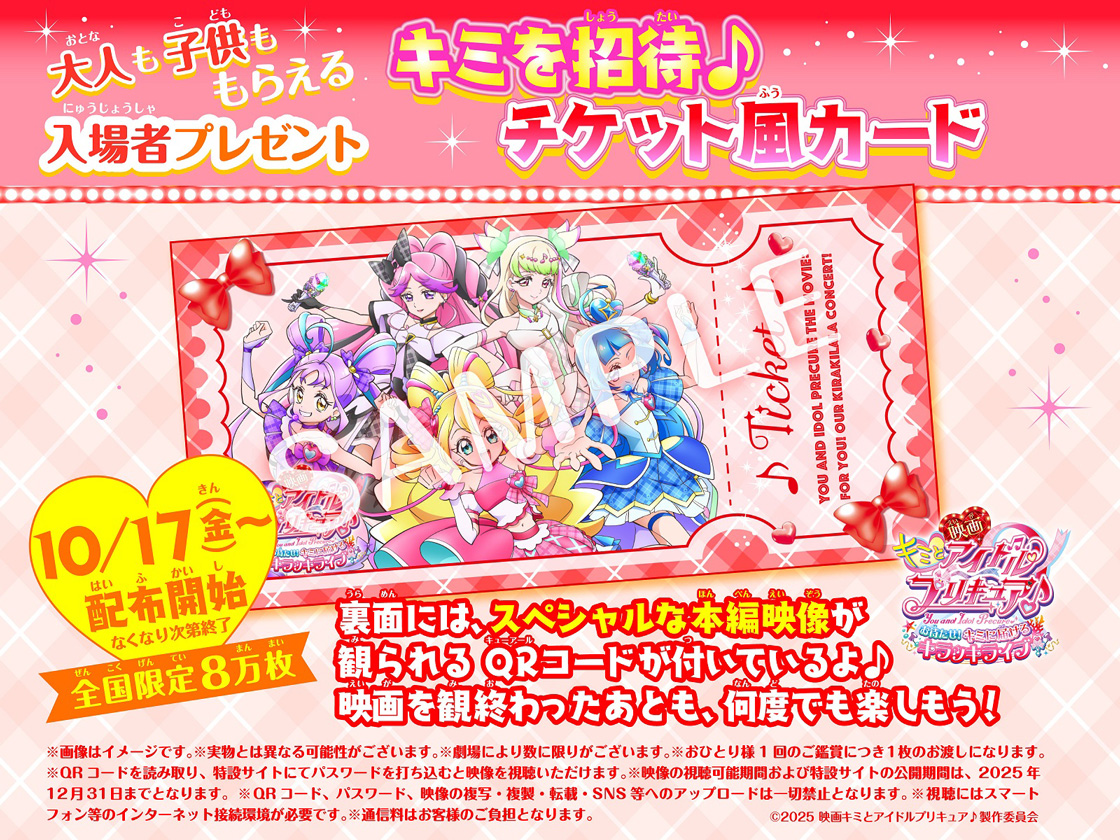 9/12(金)公開『映画キミとアイドルプリキュア♪ お待たせ!キミに届けるキラッキライブ!』 にて、入場者プレゼントの配布が決定しました!