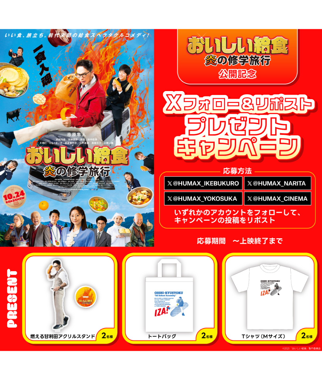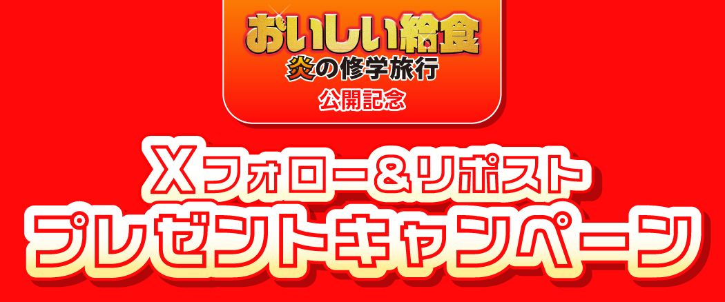『おいしい給食 炎の修学旅行』公開記念 !映画オリジナルグッズが当たる!Xフォロー&リポストプレゼントキャンペーン!