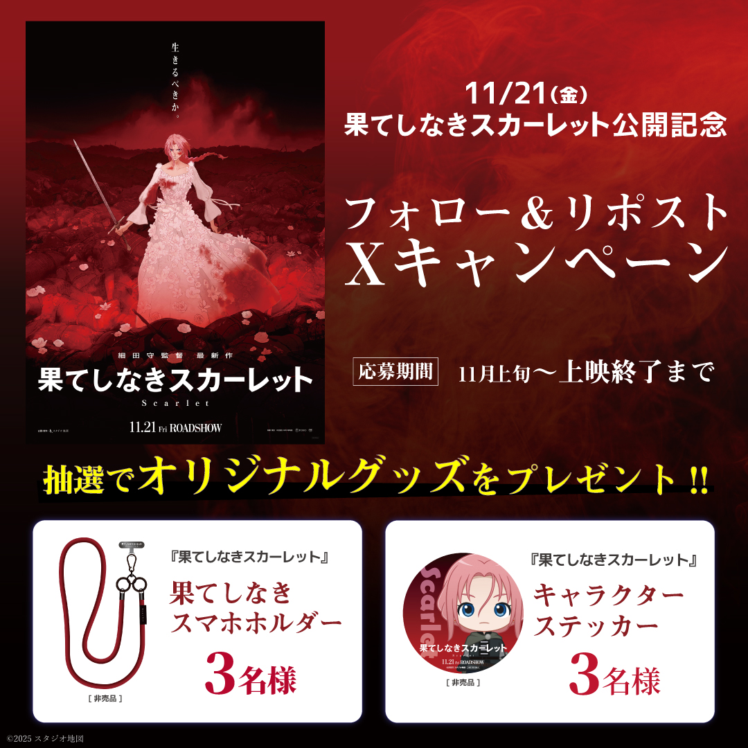 『果てしなきスカーレット』公開記念 !映画オリジナルグッズが当たる!Xフォロー&リポストプレゼントキャンペーン!