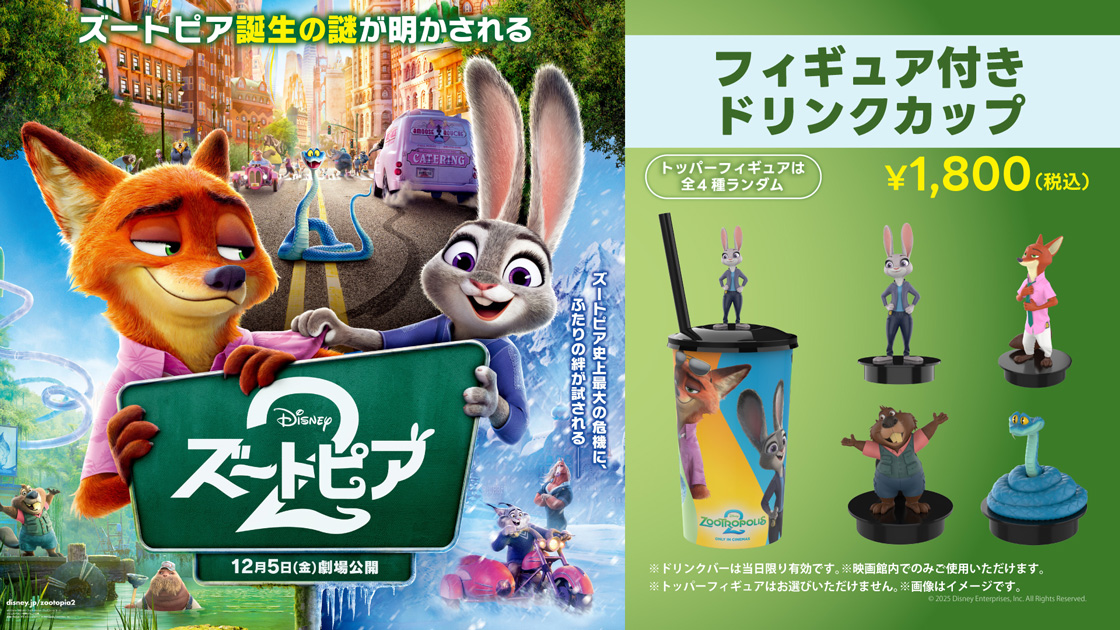 『ズートピア2』公開を記念して、フィギュア付きドリンクカップを販売します。トッパーフィギュアは全4種!